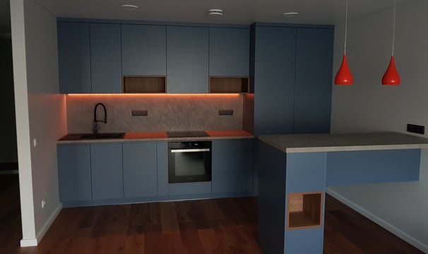 Šiame projekte turėjau galimybę dirbti su dviem butais viename kotedže, kurie jau turėjo dalinę apdailą. Mano pagrindinis uždavinys buvo ištaisyti statybinius netikslumus, kad butai atitiktų aukščiausius kokybės standartus. Po šių pataisymų ėmiausi interjero kūrimo proceso, kuriame atlikau viską nuo A iki Z. Kiekviena detalė buvo svarbi, siekiant sukurti jaukią ir stilingą aplinką. Pasirinkau modernius ir funkcionalius sprendimus, kurie ne tik puikiai dera vienas su kitu, bet ir atspindi savininkų asmenybę. Galutinis rezultatas – tai erdvės, kurios ne tik estetika, bet ir komfortu džiugina gyventojus.
